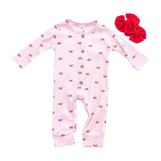 Tiny Bows Ribbed Romper